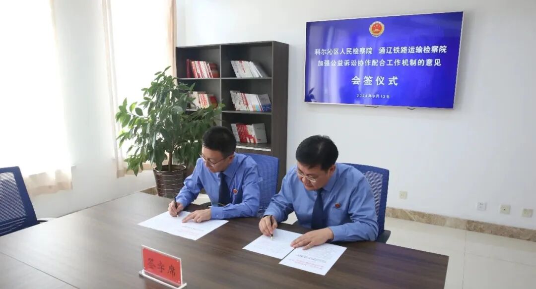 随后,两院紧紧围绕“地铁协作”的主要内容及要求,共同签署了《通辽铁路运输检察院与通辽市科尔沁区人民检察院加强公益诉讼检察协作配合工作机制的意见》,旨在以“高质效办好每一个公益诉讼案件”为根本遵循,以建设检察工作理念、体系、机制、能力现代化为目标,促进相互学习,在互联互通中实现优势互补。