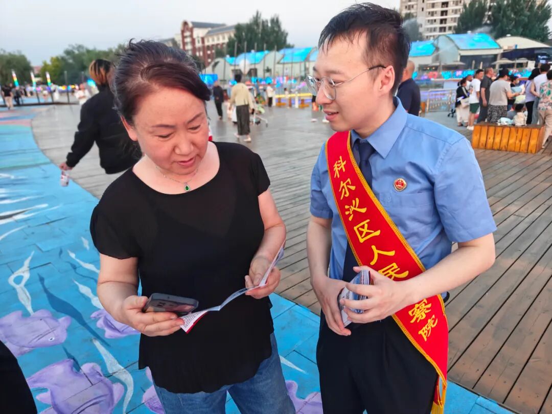 在第 38 个 “6?26” 国际禁毒日来临之际,为深入贯彻落实习近平总书记关于禁毒工作的重要指示精神,科尔沁区检察院组织检察人员走进通辽市悦来河文化休闲街区,参加由市禁毒委员会和市委宣传部主办,市禁毒委员会办公室、市文旅集团和乌兰牧骑承办的 “全面防范药物滥用、携手筑牢无毒通辽” 纪念 6.26 国际禁毒日宣传活动,在历史底蕴与现代科技交融的悦来河畔,向群众传递禁毒防毒的法治理念。