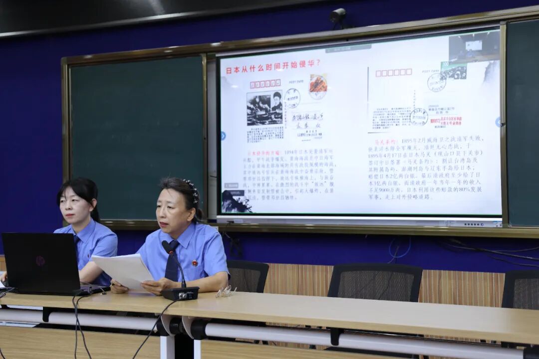 活动现场,一枚枚珍贵的邮票静静地陈列在展框中,犹如一扇扇穿越时空的窗口。我院检察官助理刘会燕带来了自己收藏的300余枚抗战主题珍贵纪念邮票,迅速吸引了同学们好奇与专注的目光。她从日本侵华的历史背景讲起,借助每一枚邮票方寸之间的图案、文字和背后的故事,将一段段沉甸甸的历史娓娓道来。从“九一八”事变的屈辱与悲愤,到卢沟桥抗战的枪声;从平型关大捷的振奋,到百团大战的雄壮;从艰苦卓绝的相持阶段,到最终胜利的辉煌时刻,邮票成为无声的史书,带领同学们重回烽火连天的岁月,深刻感悟伟大抗战精神。