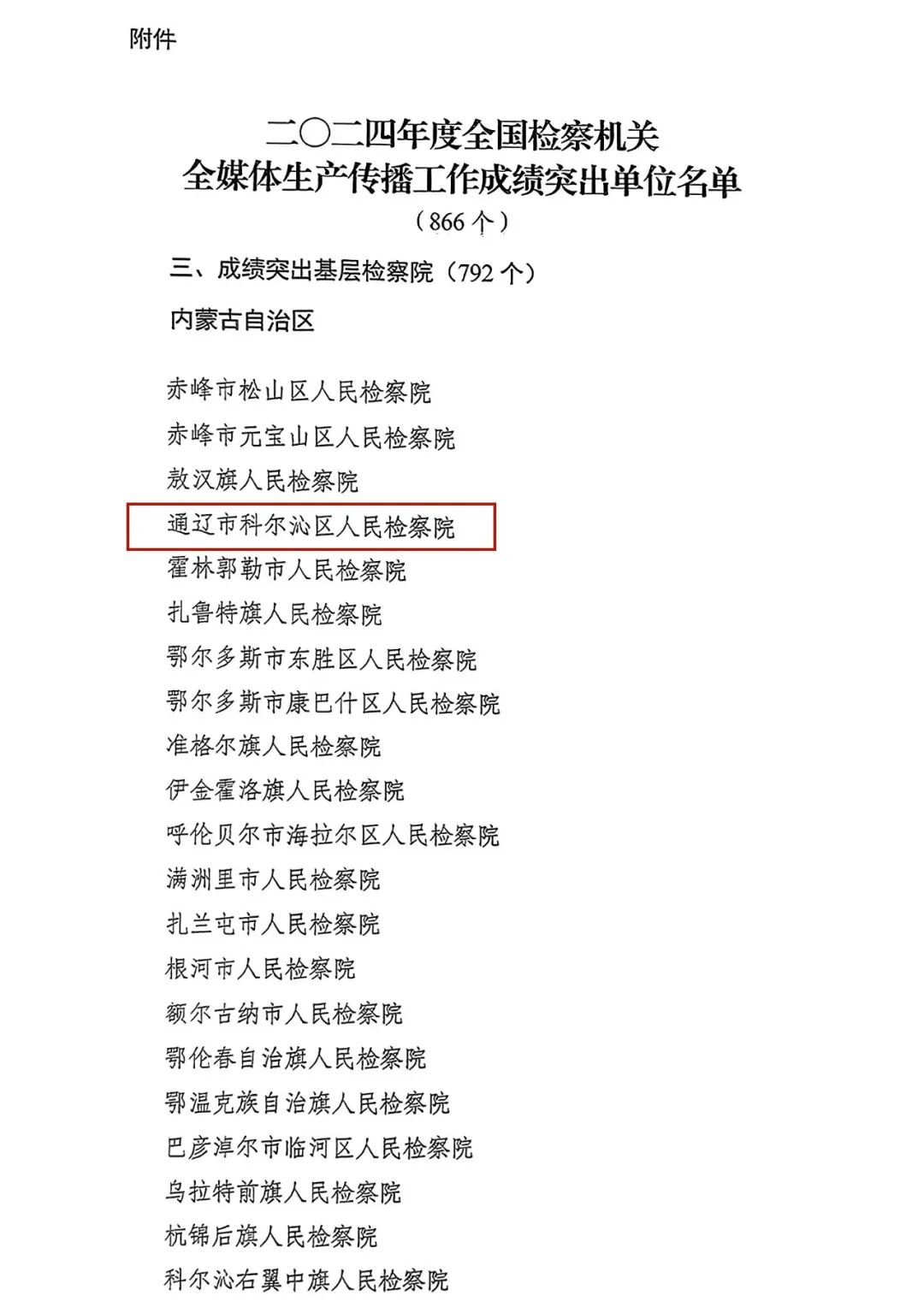 科尔沁区检察院荣获