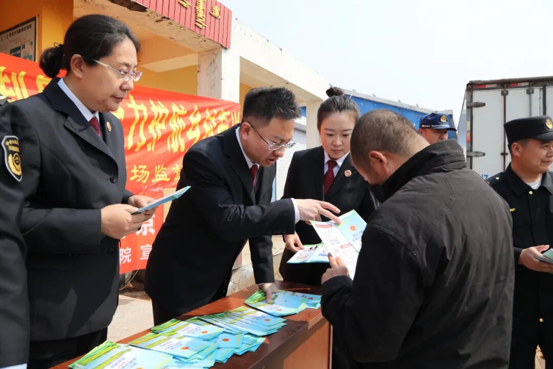 我院检察人员与市场监督管理局工作人员在辖区内集市检查了肉制品的产品进货票据、动物检疫合格证明、在售肉品检验报告、储存条件及标签标识。同时,通过设置咨询台、发放宣传资料等方式,向商户及消费者宣传公益诉讼检察工作在食品安全保护方面的职能与相关法律知识,现场共发放宣传单200余份,接受群众咨询30余人次。