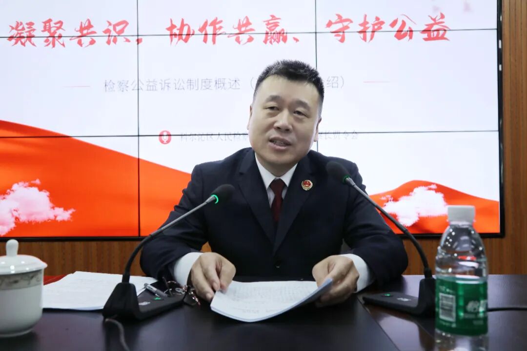 贾令会以学习贯彻党的二十大精神和深入贯彻落实《中共中央关于加强新时代检察机关法律监督工作的意见》为背景,系统梳理了公益诉讼制度的发展脉络,生动阐释了公益诉讼检察的任务、范围及办理程序,结合科尔沁区公益诉讼工作开展情况和办理的典型案例,就如何辩证看待检察机关与行政执法机关之间形成良性互动、有效监督、合作共赢进行了深层次的交流。