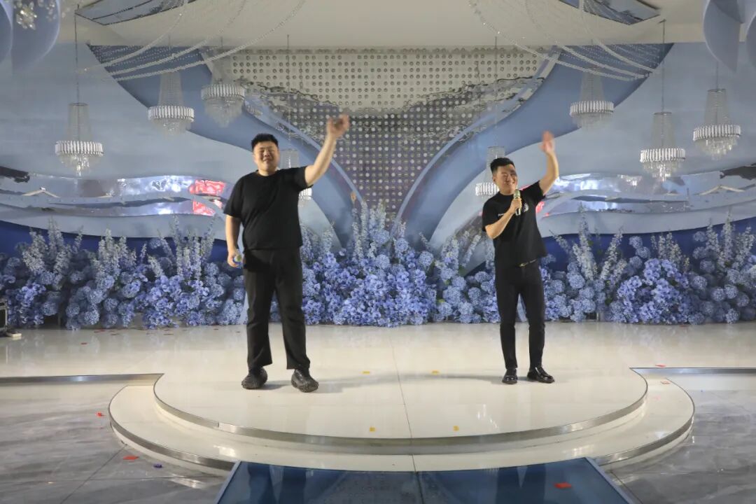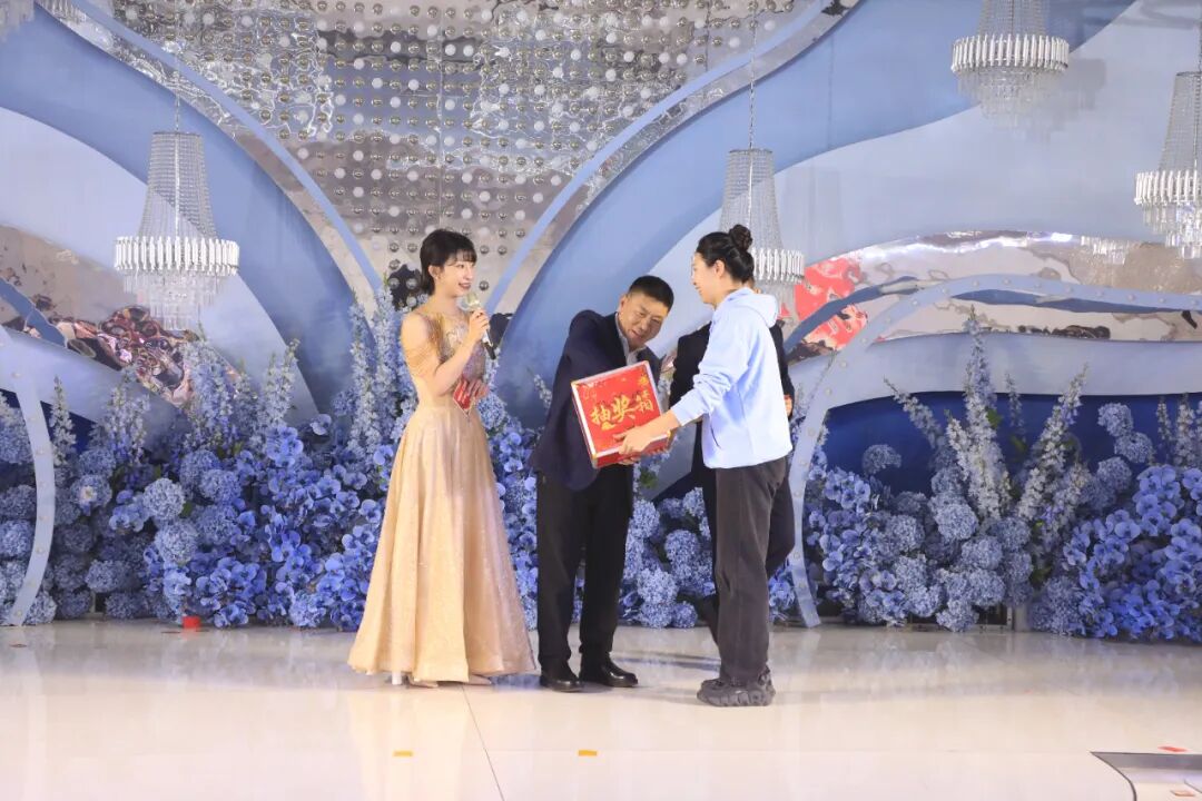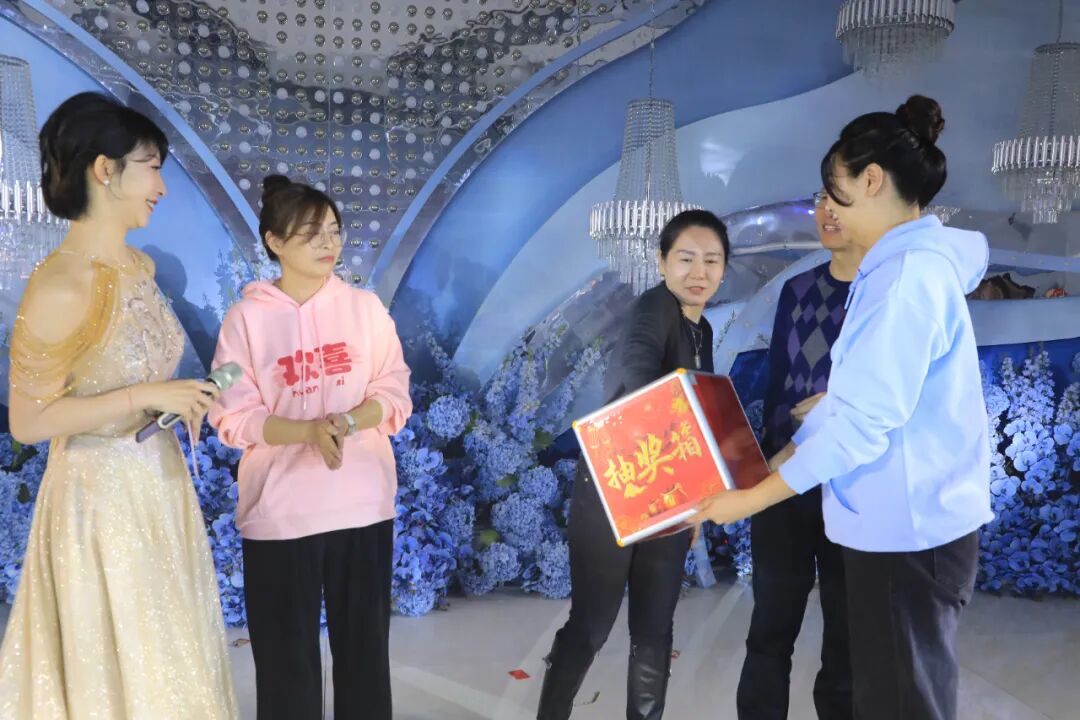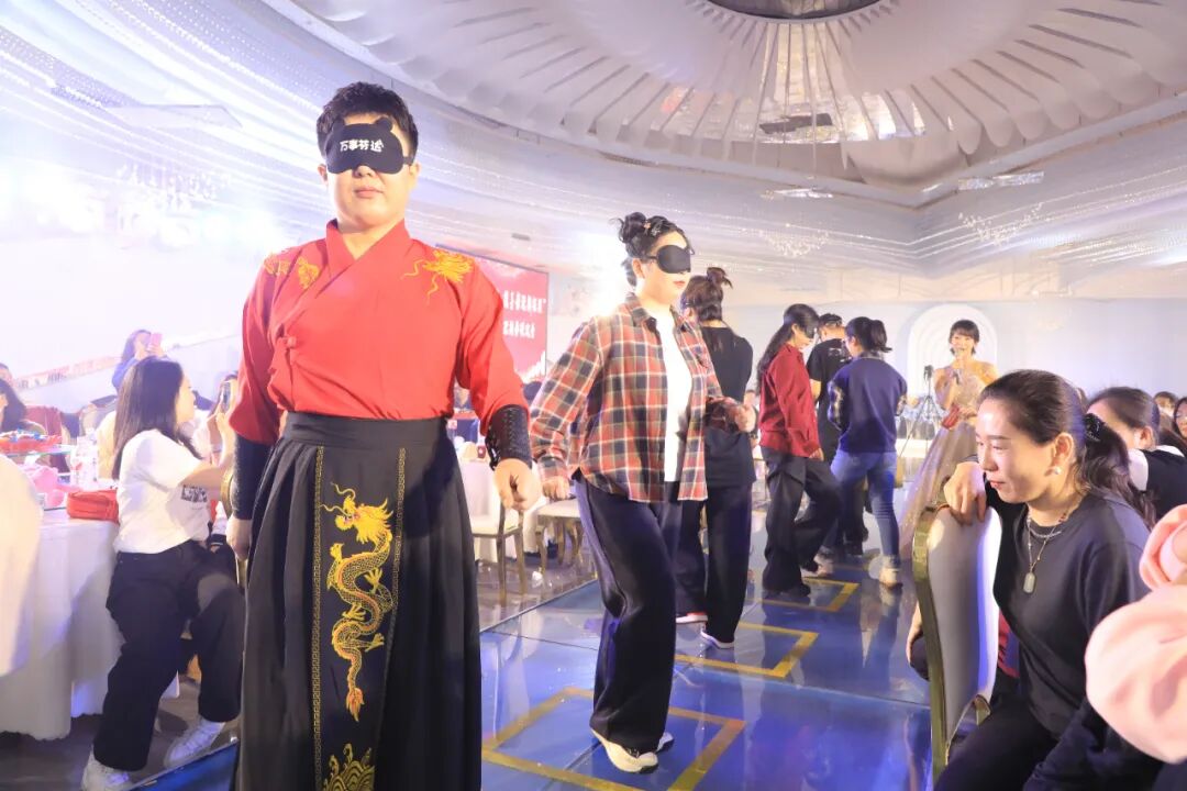 游戏环节更是将联欢会的欢乐氛围推向了新的高潮。在“抢水瓶”游戏中,大家纷纷使出浑身解数,表情和动作引得现场笑声不断;“蒙眼踏步走”环节则考验了部门同事之间的默契,大家相互配合,展现了团队协作的力量;最让人激动人心的时刻非“抽奖环节”莫属,大家都专注的听着台上念出的中奖号码,期待着成为“幸运儿”!